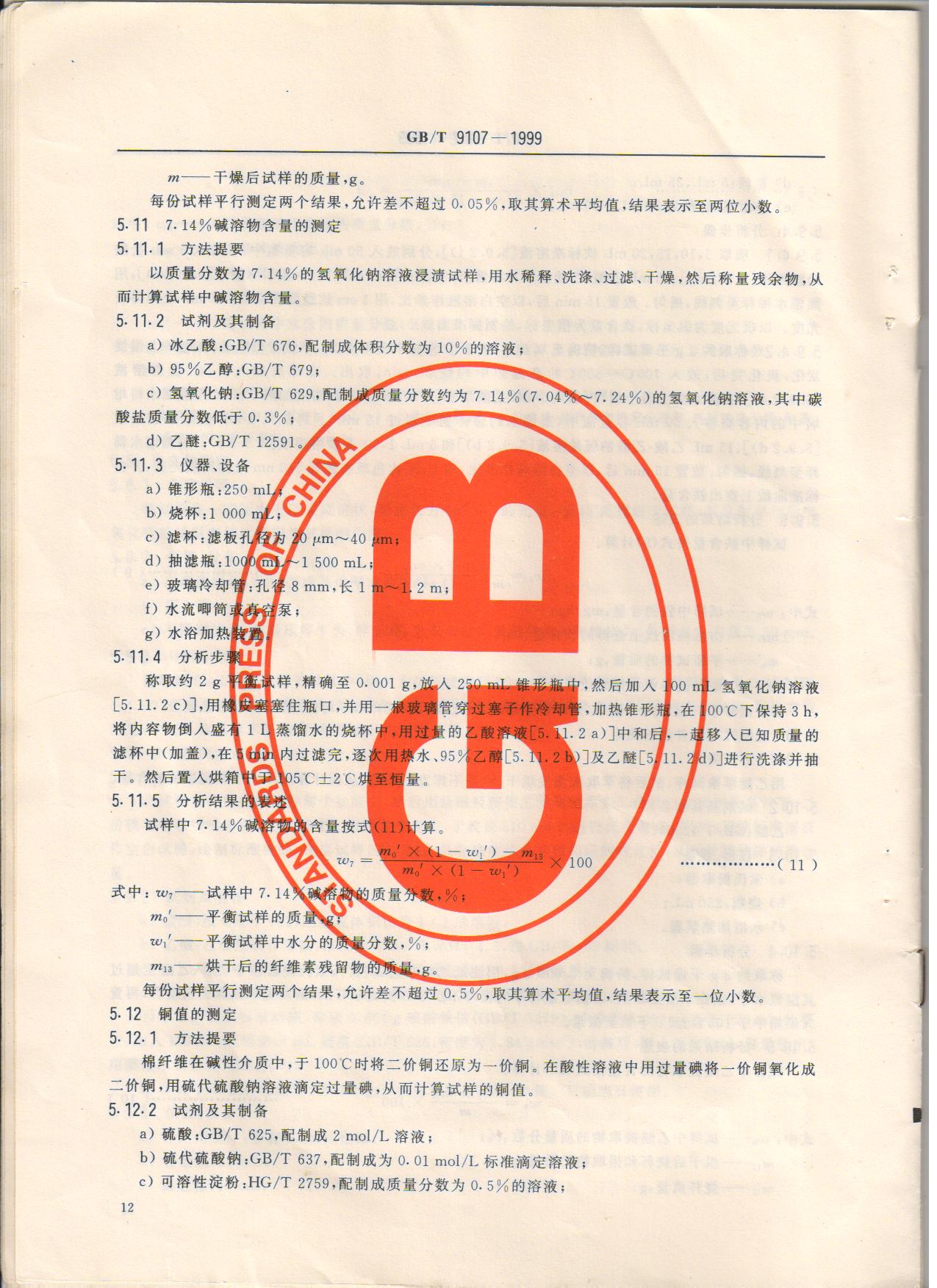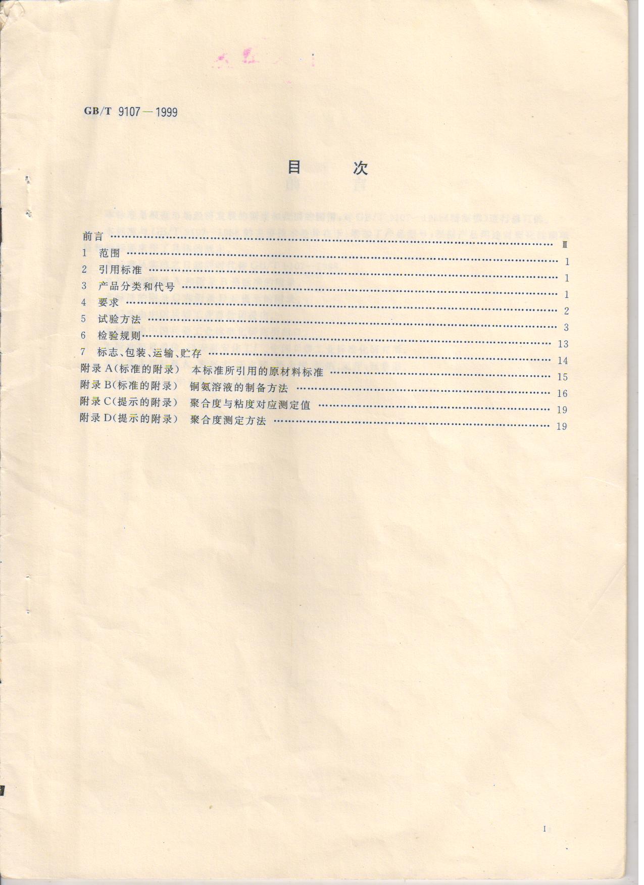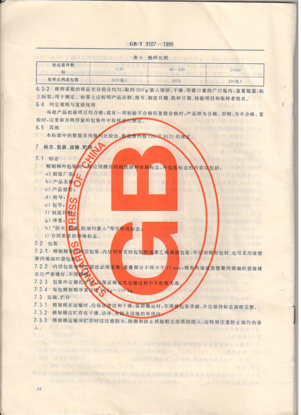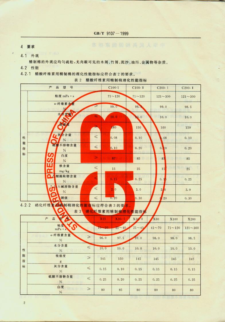 精制棉 GB/T9107-1999