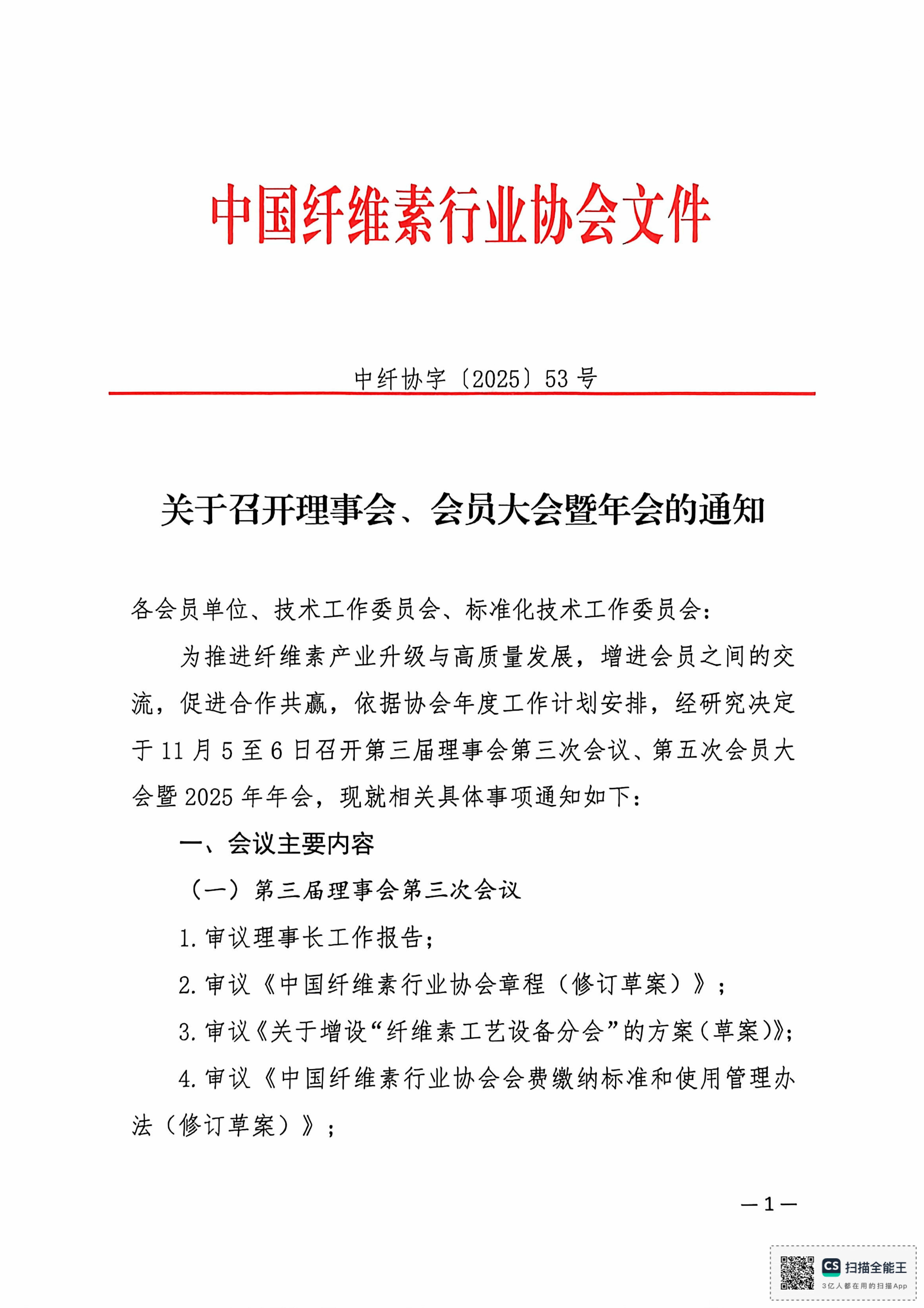 中国纤维素行业协会召开理事会、会员大会暨年会的通知