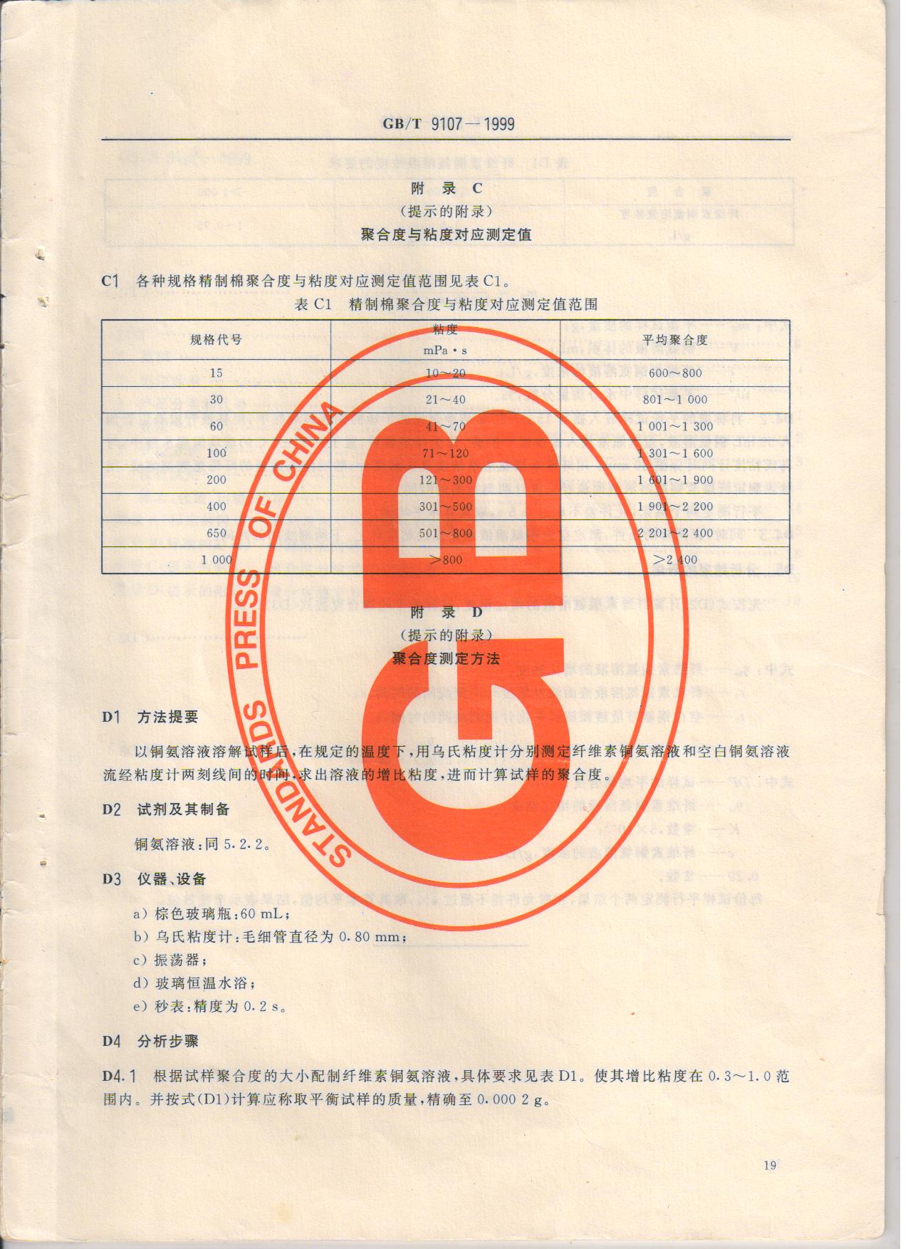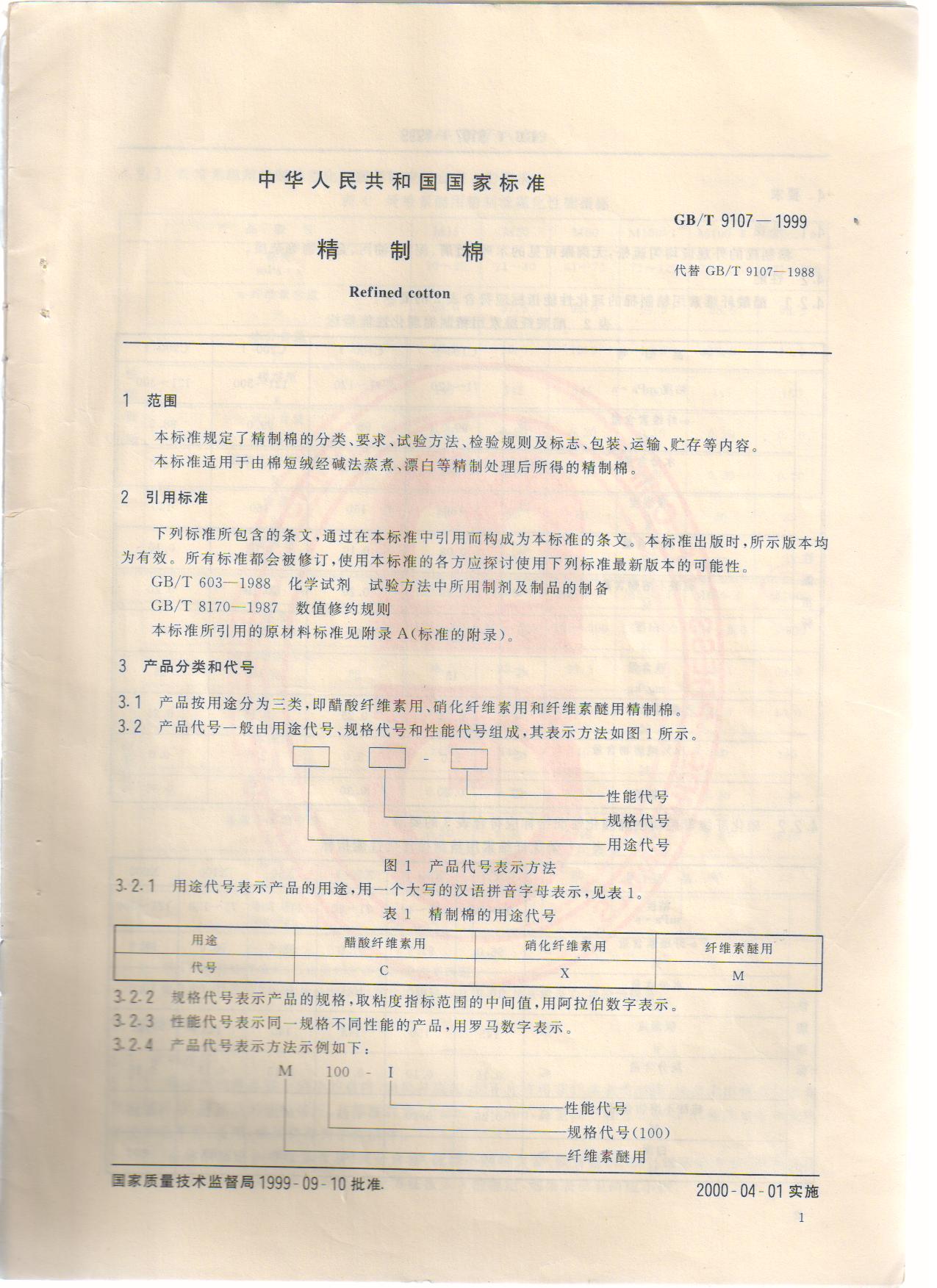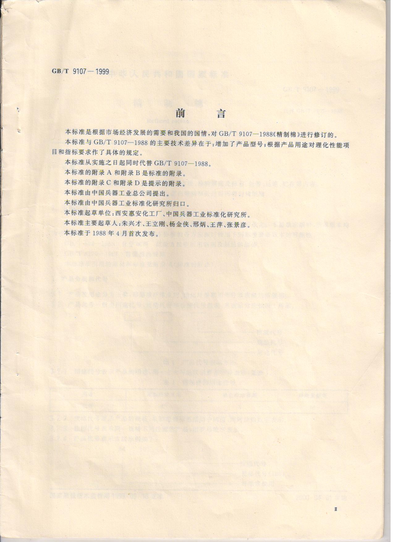 精制棉 GB/T9107-1999