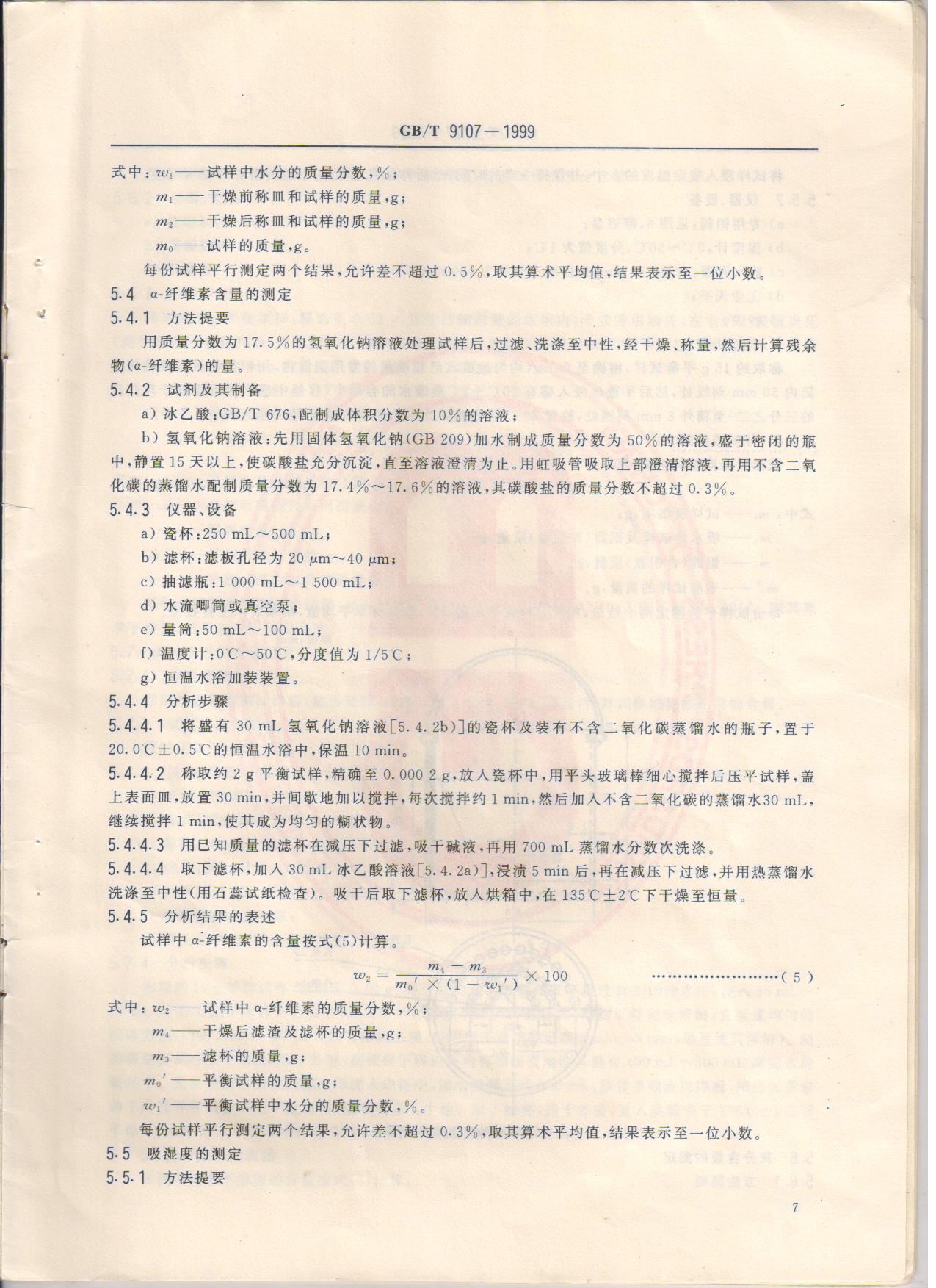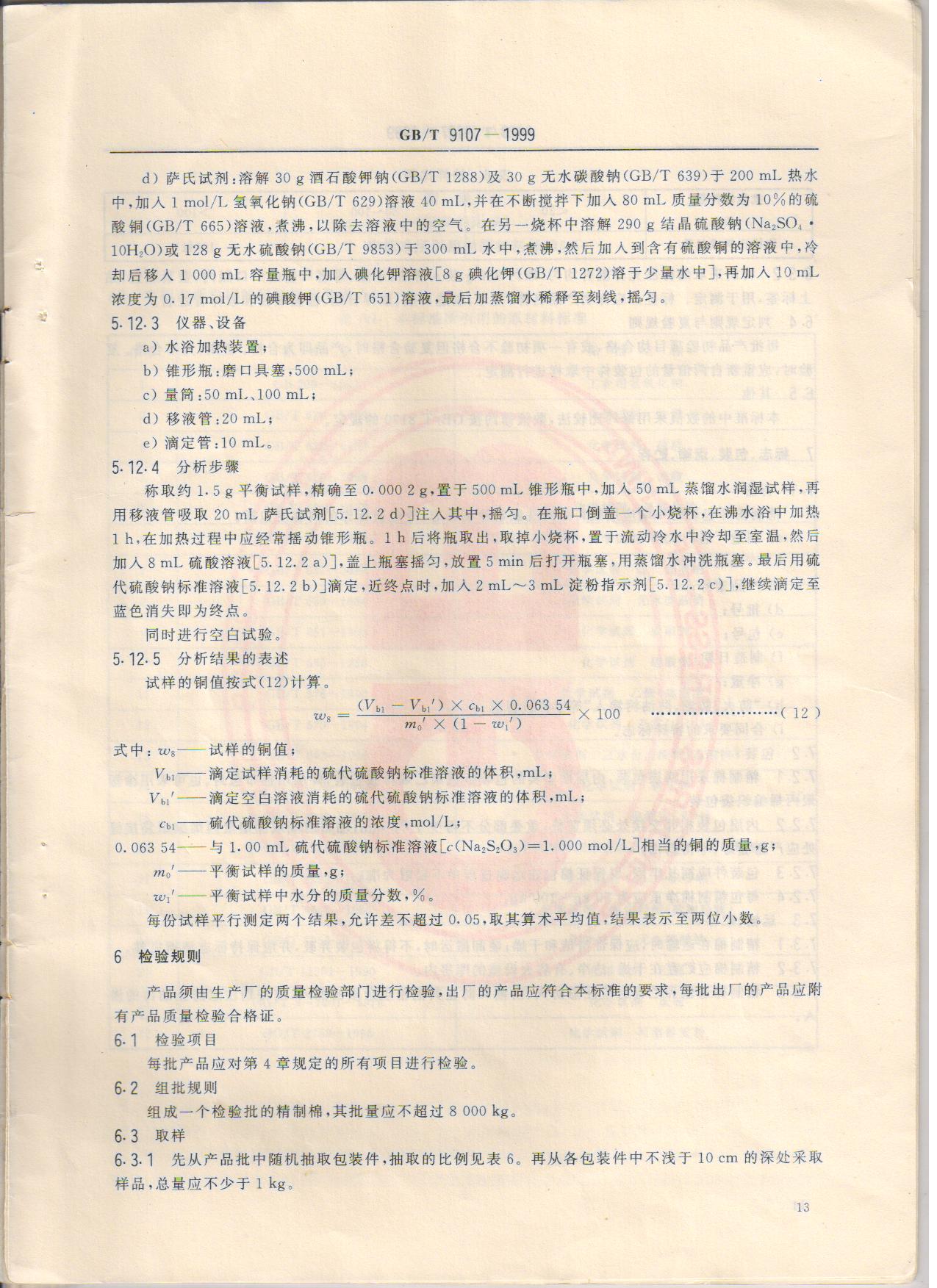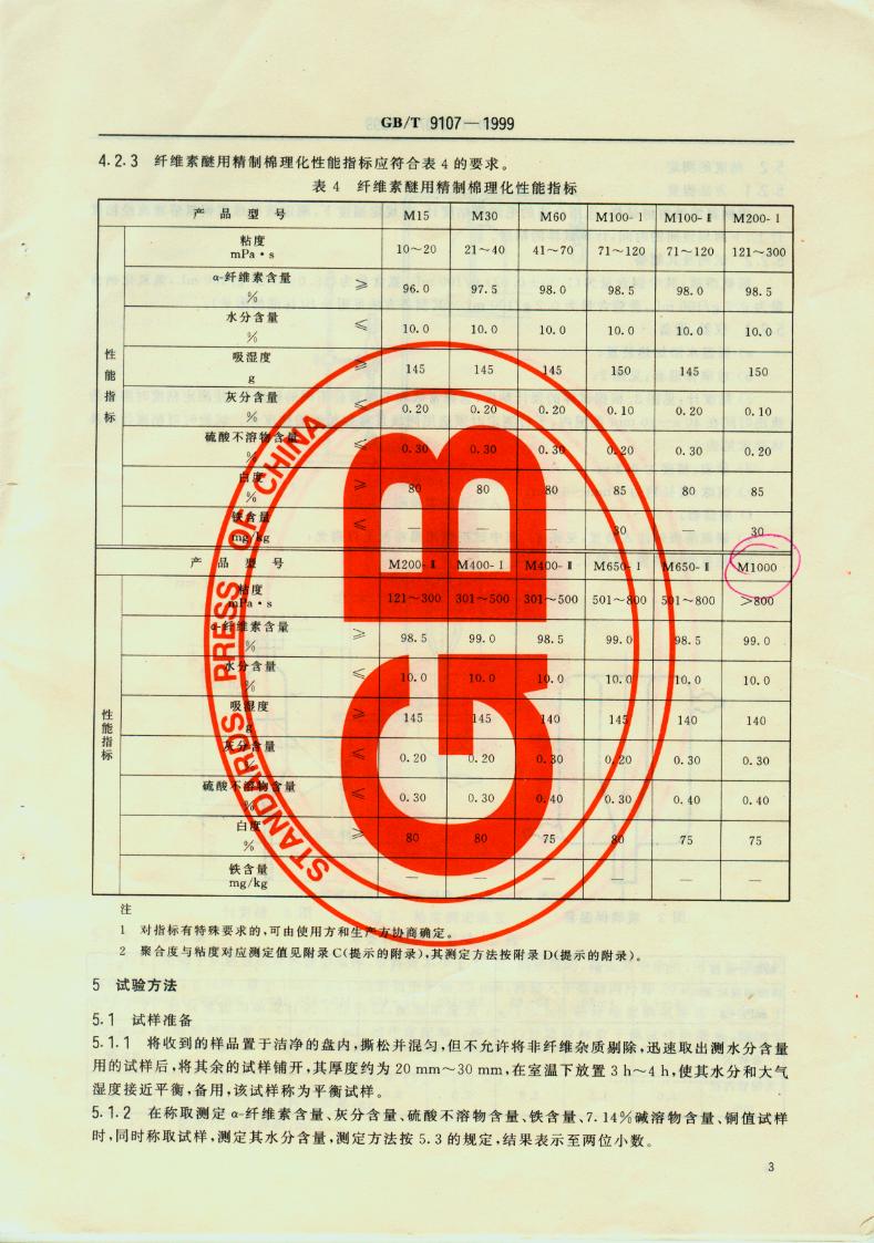 精制棉 GB/T9107-1999